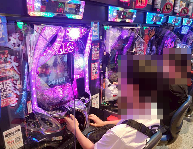 「パチスロ かぐや様は告らせたい」や「パチスロ からくりサーカス」などに、うれしそうにレバーを叩いている姿があった。