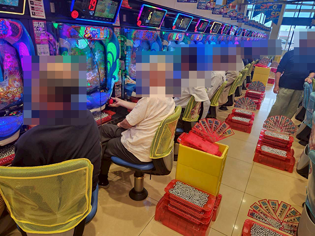「P大海物語5スペシャル」にて、多くのプレイヤーが持ち玉を使って遊技中。