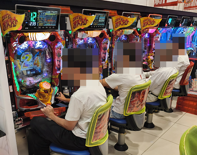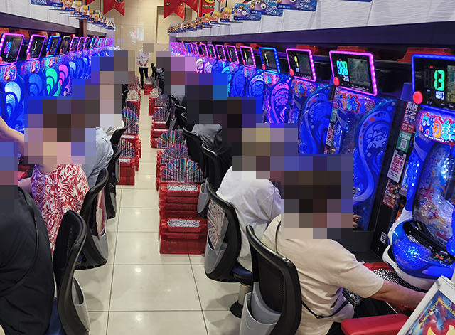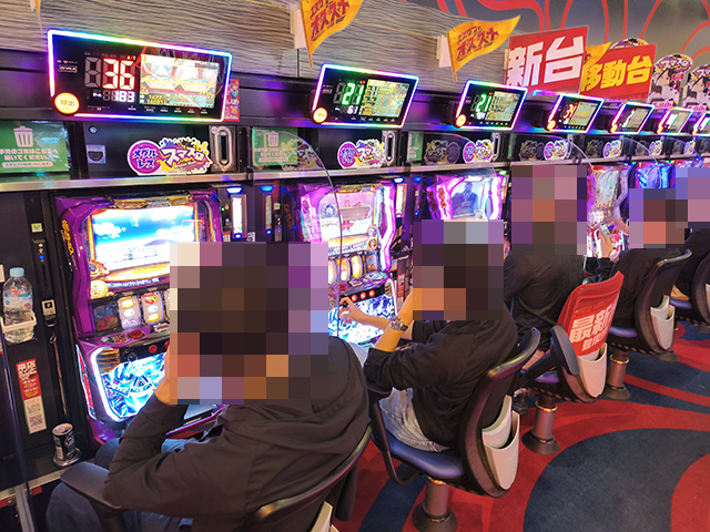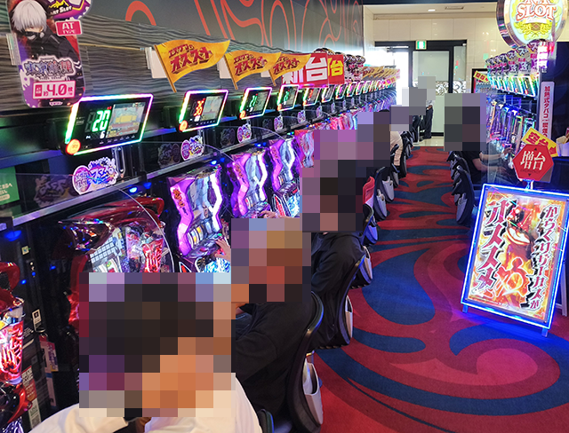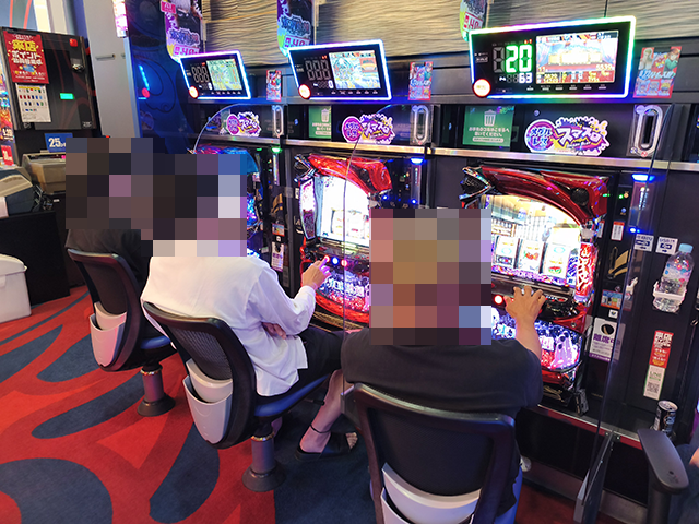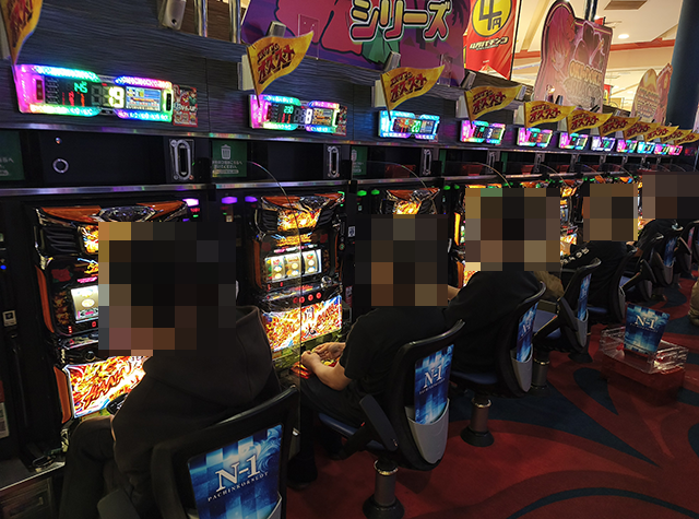 ハナハナシリーズやジャグラーシリーズで遊技をおこなっているプレイヤーも多く、にぎやかな状況となっていた。