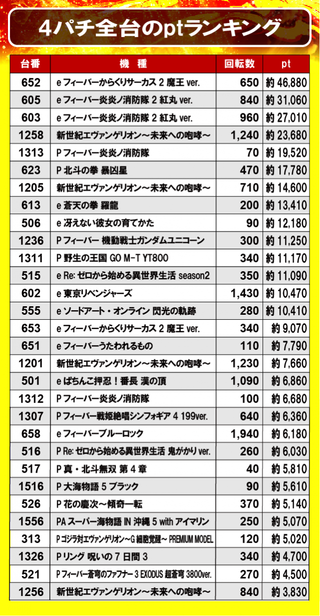 ②4パチ全台のptランキング