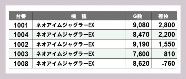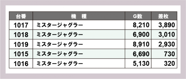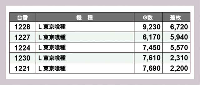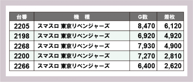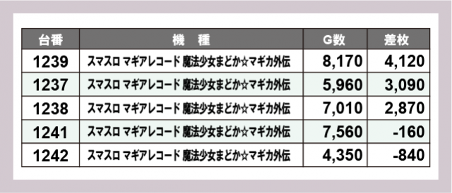 ※差枚数順に掲載しています