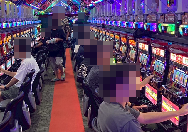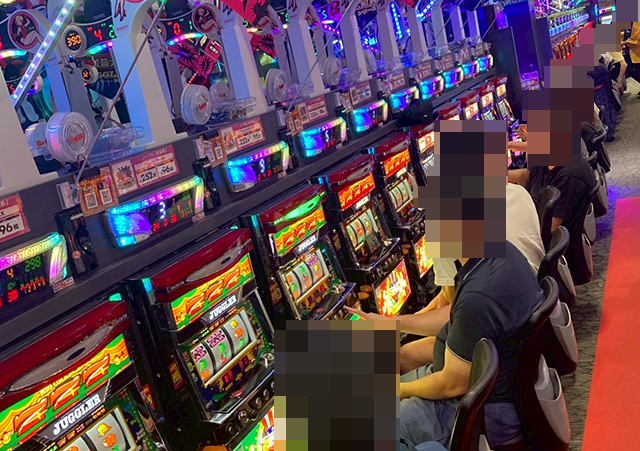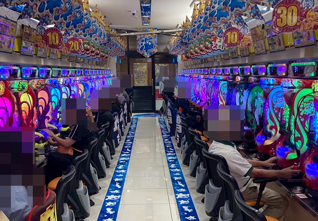 「アイムジャグラーEX」や「ゴーゴージャグラー3」などが笑顔に彩られており、どの機種も華やかなムードとなっていた。