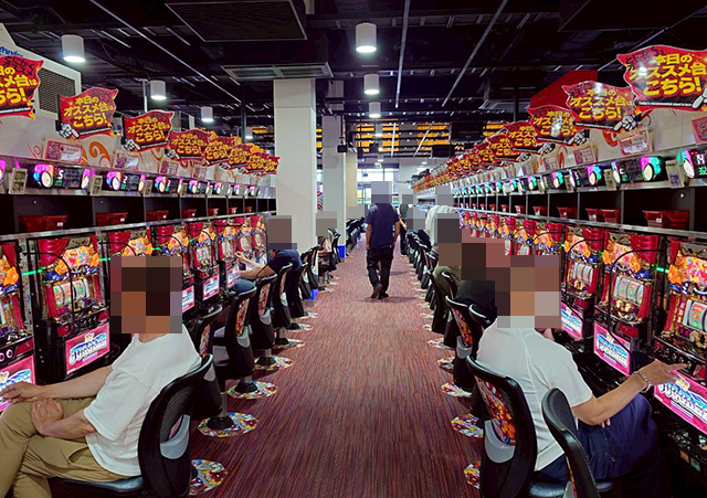 ボーナスが軸となる機種に笑顔が広がっていた「グランパ三方原」。