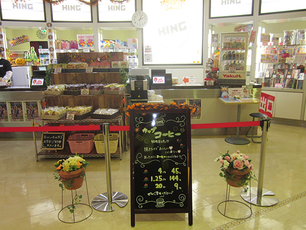 カウンターでは景品のラッピングをしてくれることも魅力的。取材時はハロウィンの飾り付けがされていて、気分が高まるプレイヤーも多かったことだろう。またレストスペースは居心地のよい空間を提供しており、空気清浄機が設置されていることなど、誰もがゆったりと休憩できるように思えた。