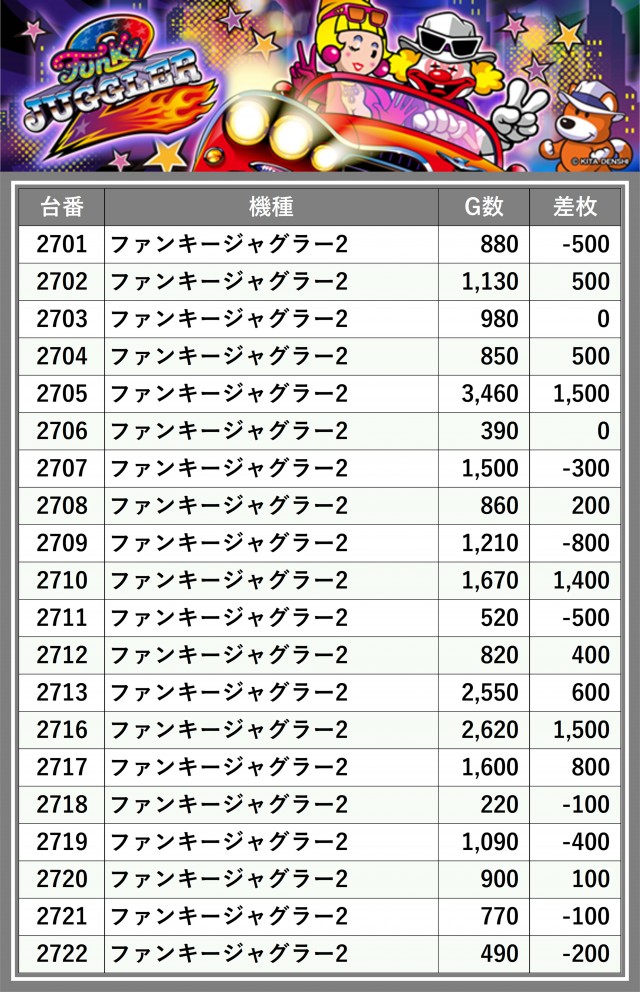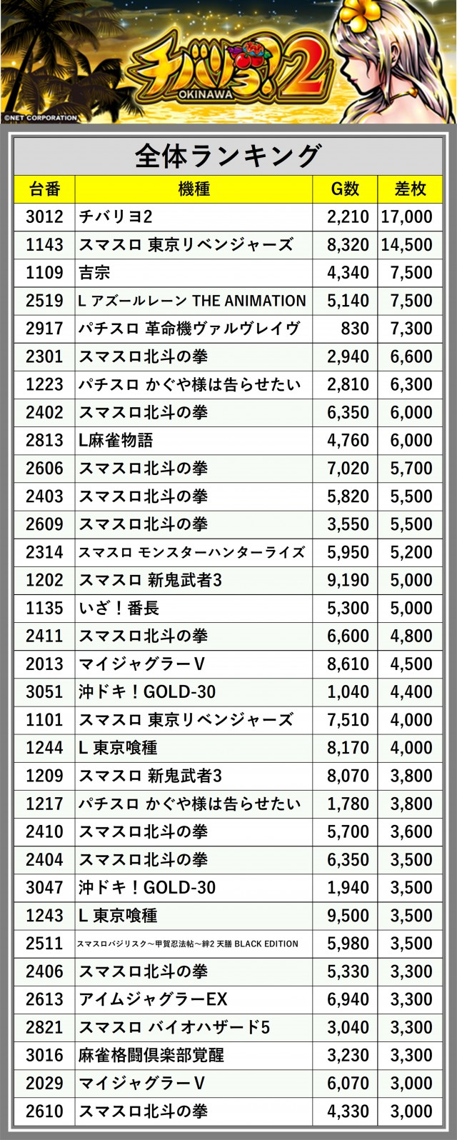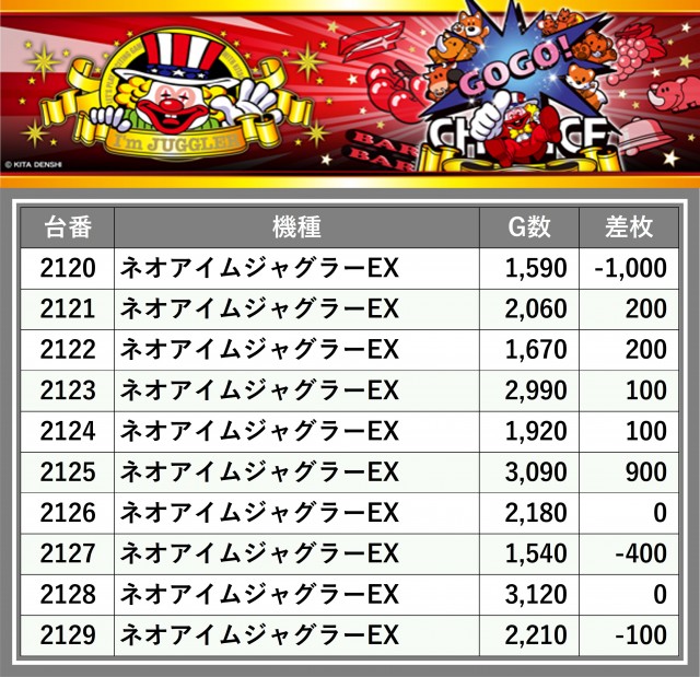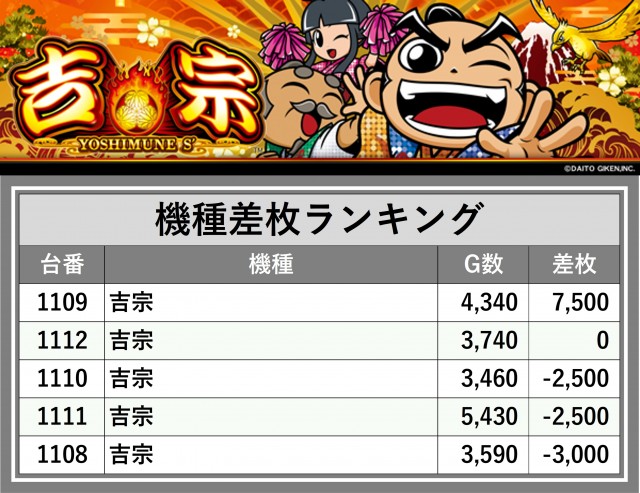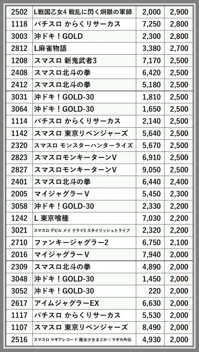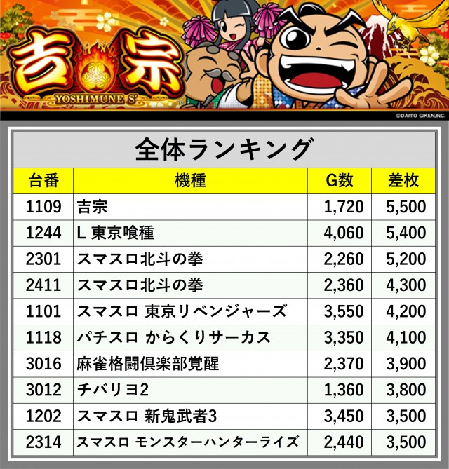 厳選された取材対象機種をはじめ、その他スロット全体から好記録が飛び出した!プレイヤーが楽しんだ1日を下記データにて振り返ってみて欲しい。