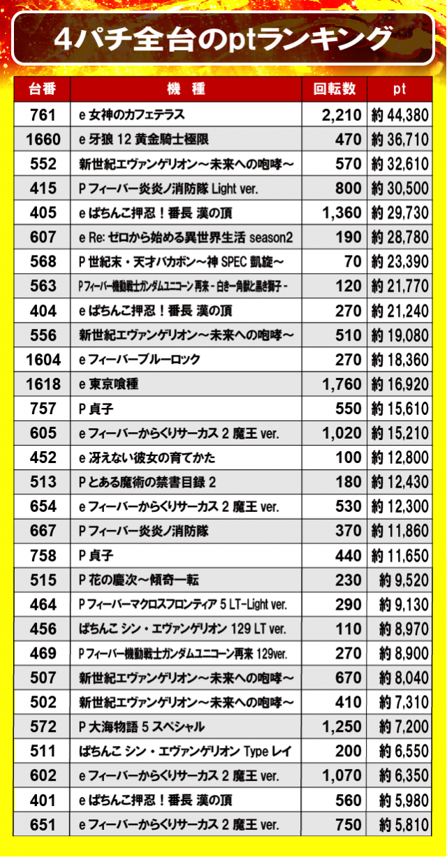 ②4パチ全台のptランキング