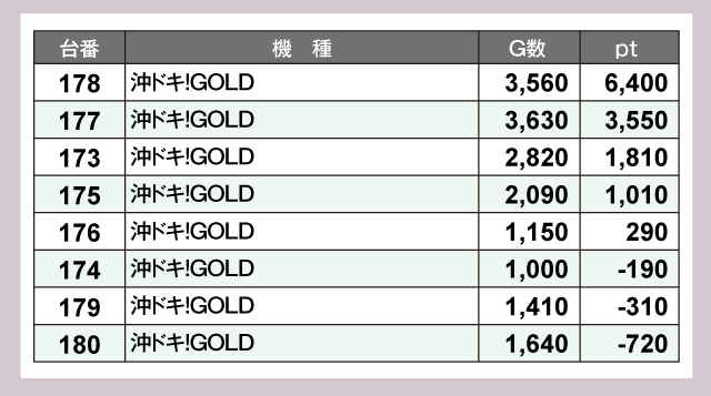 『沖ドキ!GOLD』は全体的にG数が物足りなかったが、それでも優秀台が複数誕生していた。