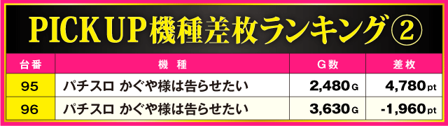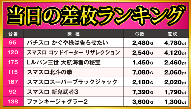 当日の差枚ランキング