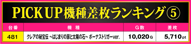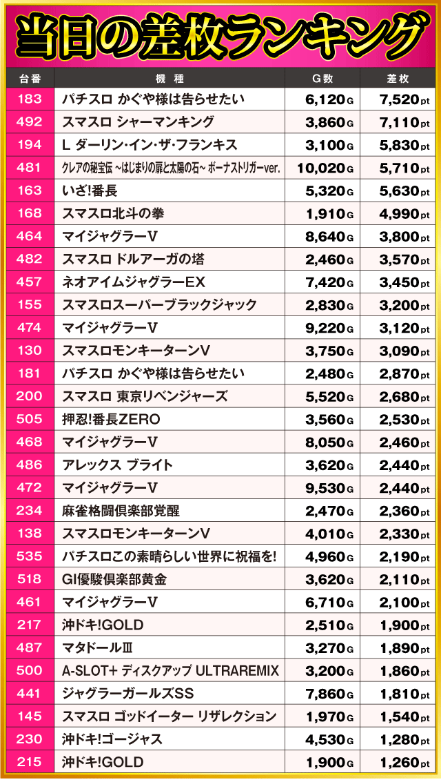 当日の差枚ランキング