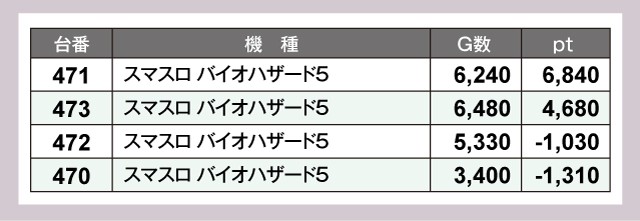 『スマスロ バイオハザード5』は4台中2台が大幅プラスと実に華やかな光景が広がっていた。