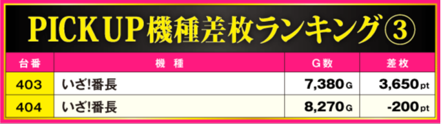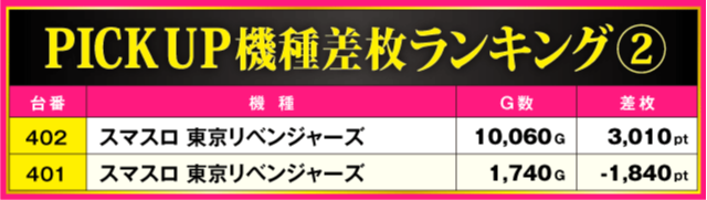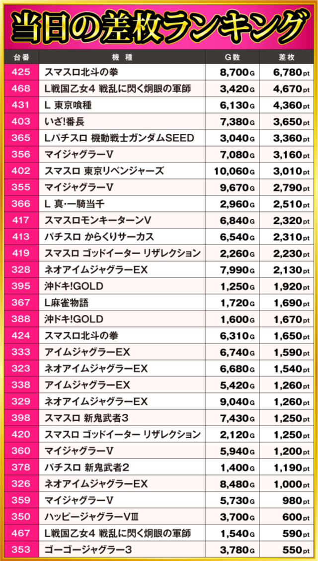 当日の差枚ランキング