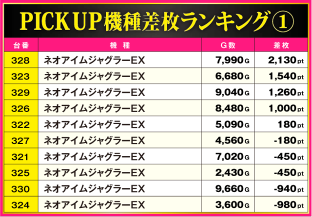 ※差枚pt順に掲載しています。