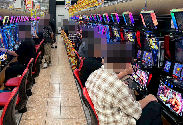 「スマスロ北斗の拳」にも楽しげに遊技をおこなう姿があり、有意義な時間を過ごせていることがうかがえた。