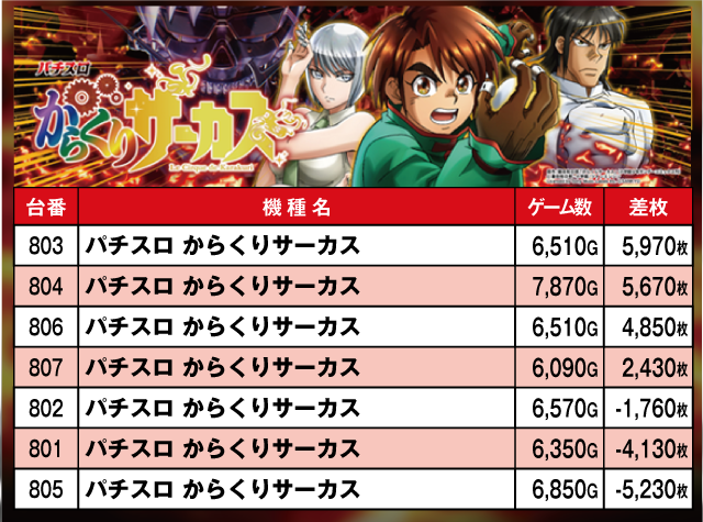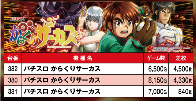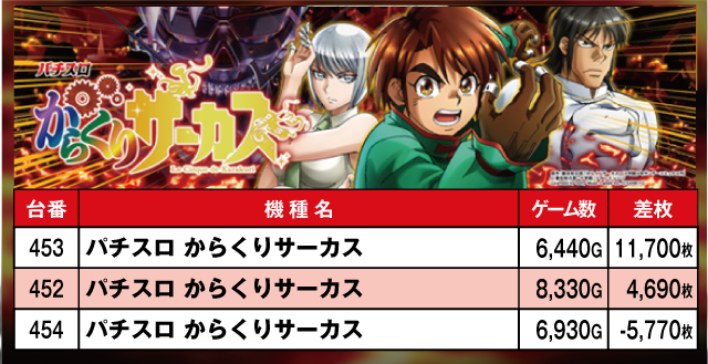 今回は、その中でも特に際立っていた『パチスロ からくりサーカス』の結果をまずは紹介しよう!