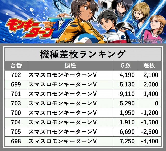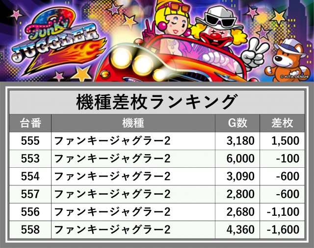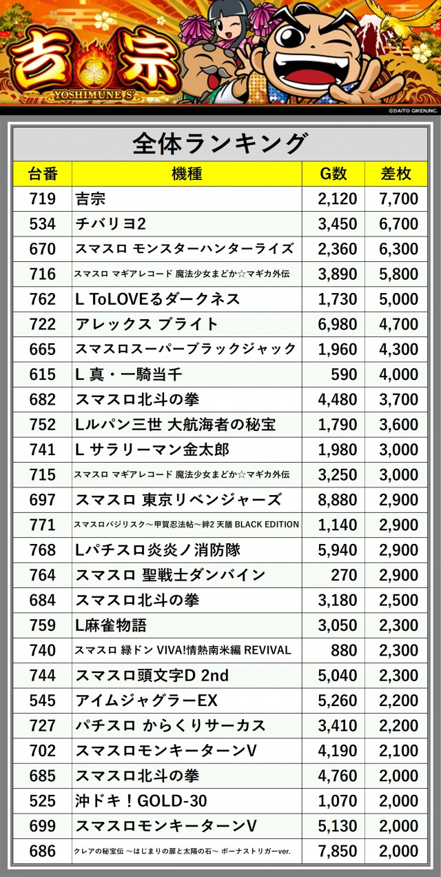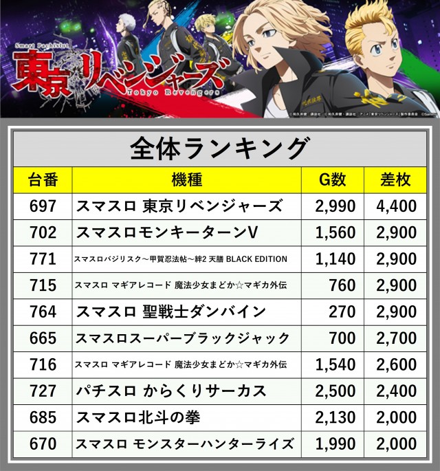 ※差枚数順に掲載しています