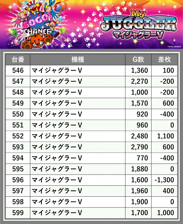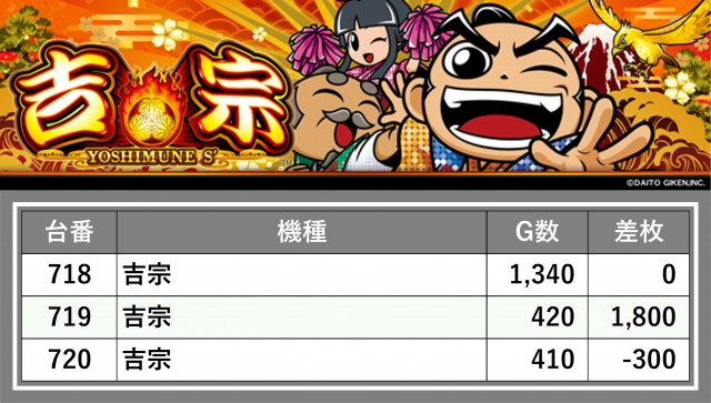 厳選された取材対象機種をはじめ、その他スロット全体から好記録が飛び出した!プレイヤーが楽しんだ1日を下記データにて振り返ってみて欲しい。