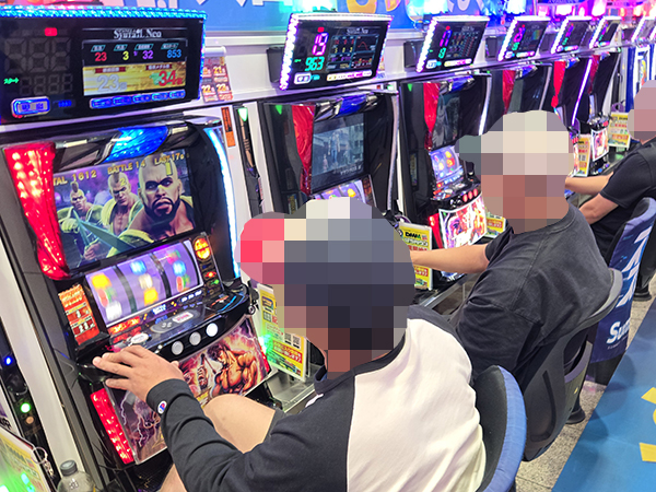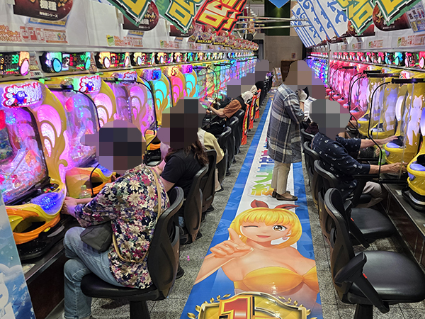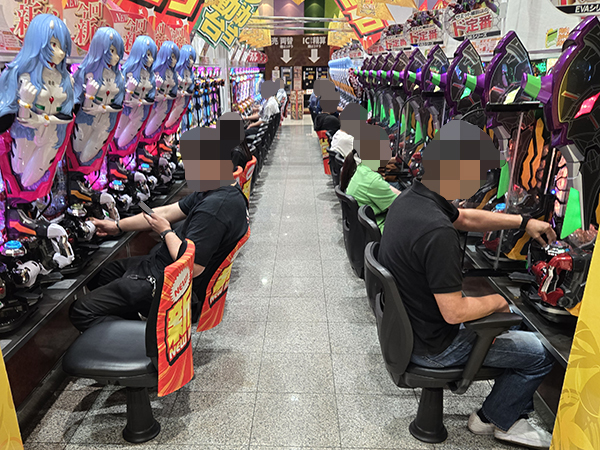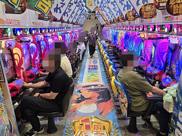 午後の1円パチンコの様子を見ると、「PAスーパー海物語 IN 沖縄5 with アイマリン」や「PA海物語3R3」といった甘海シリーズが大盛り上がり。機種性能を存分に発揮するプレイヤーを目の当たりにしている。