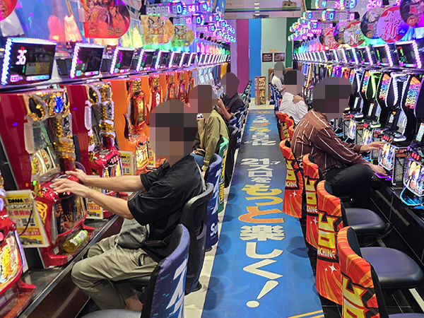 店内には老若男女を問わずプレイヤーが集合。パチンコ・パチスロの各シマから活気が感じられた。