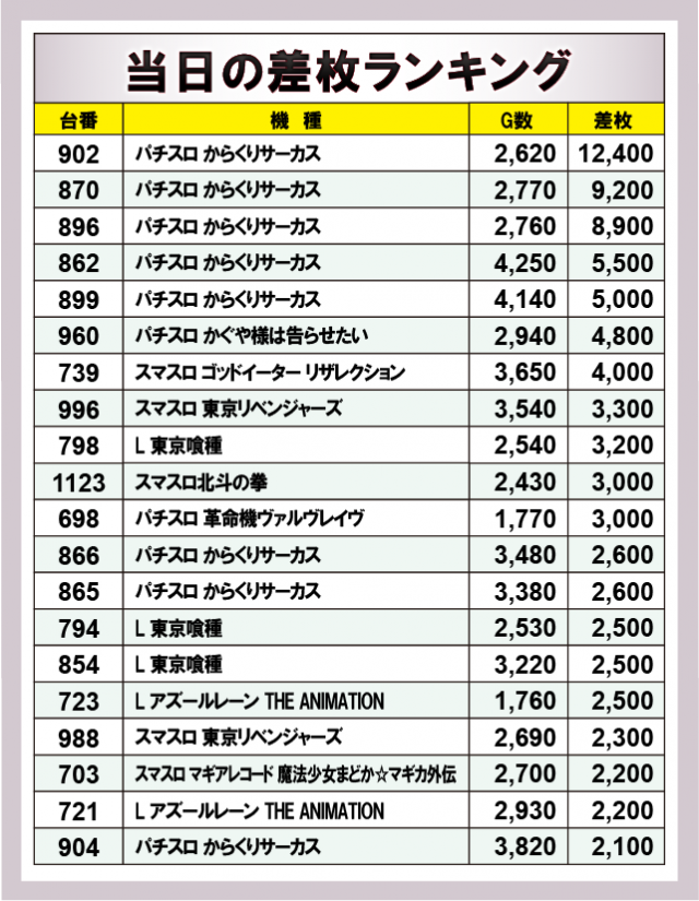 ※記事内の差枚表記はぱちタウン独自調査に基づくものです。ご了承ください。