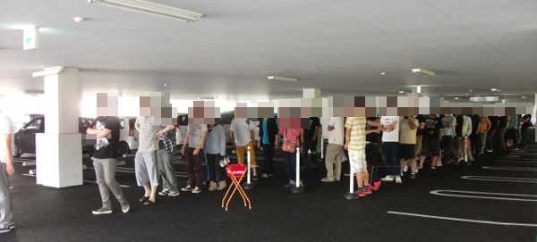 朝イチの入場抽選には90名前後のプレイヤーが参加。一般入場にも多くのプレイヤーが集まり、開店時には合計で140名ほどの長蛇の列ができていた。