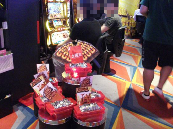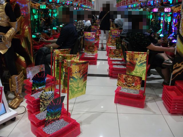 取材のなかで、もっとも盛り上がりをみせた14時頃の4円パチンコでは、「CR牙狼 金色になれ」や「CR真・花の慶次」といったMAXタイプが大人気。とくに「CR牙狼 金色になれ」には機種の特徴の1つでもある高い瞬発力を引き出しているプレイヤーが多く、シマは活気に満ちあふれていた。