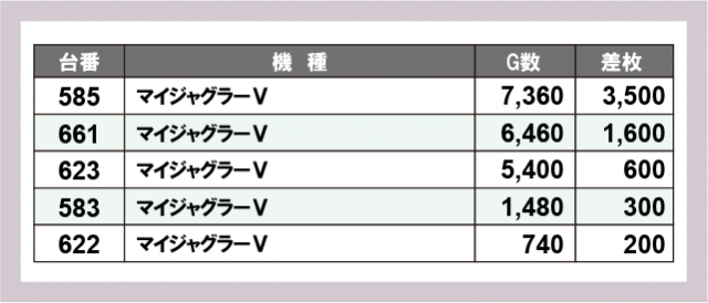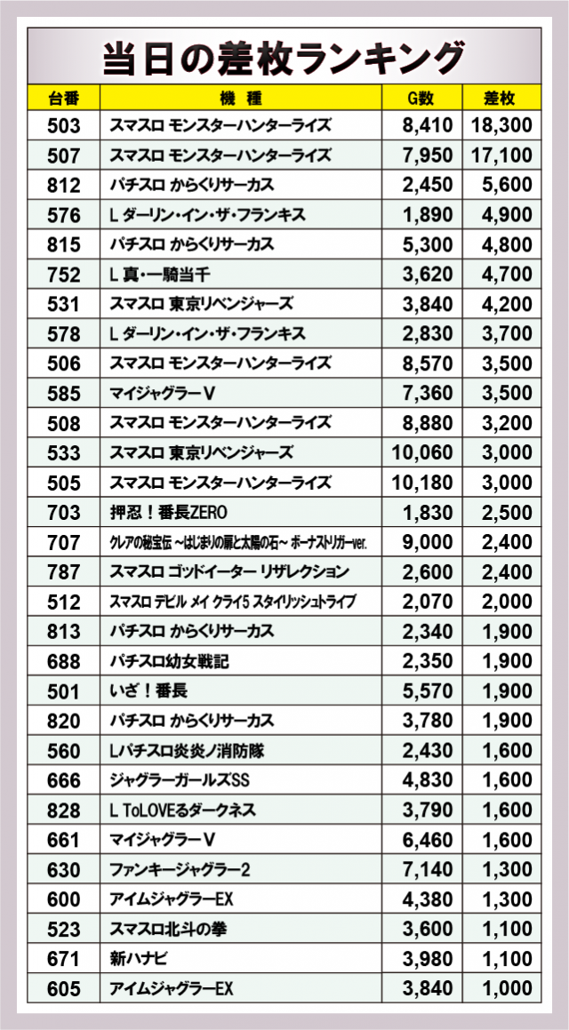 ※差枚数順に掲載しています