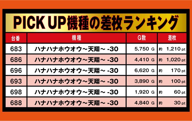 『キングハナハナ-30』と『ハナハナホウオウ~天翔~-30』といったハナハナシリーズからは4桁プラスpt台が複数飛びだすだけでなく、高稼働を誇っていた。