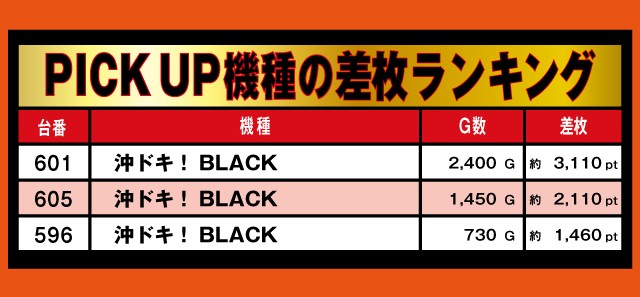 『沖ドキ!BLACK』からは4桁プラスptの優秀台が複数あらわれ、実力と人気を証明していた。