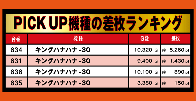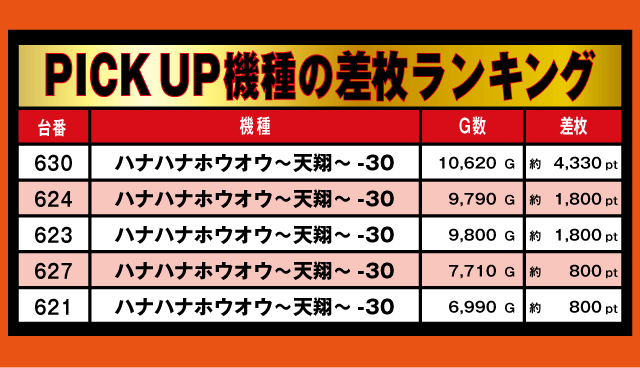 30パイPICK UP機種の差枚ランキング