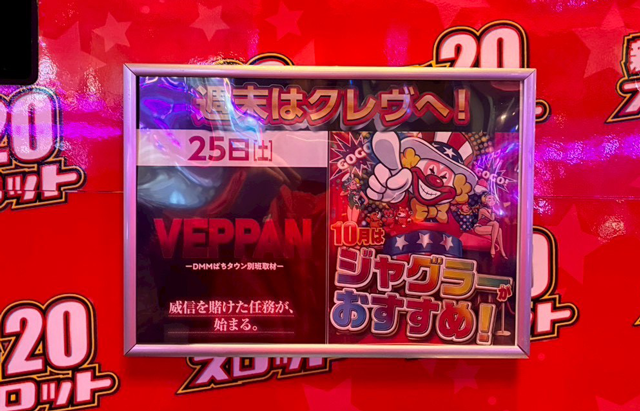 DMMぱちタウン取材班〝別班〟が威信を賭けて執り行う「VEPPAN」が、10月25日に「CREV伊達店」にて実施された。開店前から集まった15人のファンは、これから始まるであろう熱戦に大きな期待を寄せていた。その期待に応えるかのように、ホール内は開店と同時に活気に満ち溢れ、多くのプレイヤーが目当ての台へと向かっていった。果たしてどれほどの盛り上がりを見せてくれたのか、ここからはスロット全95台の詳細とともに、当日の店内の盛り上がりをチェックしていこう!