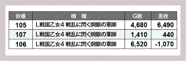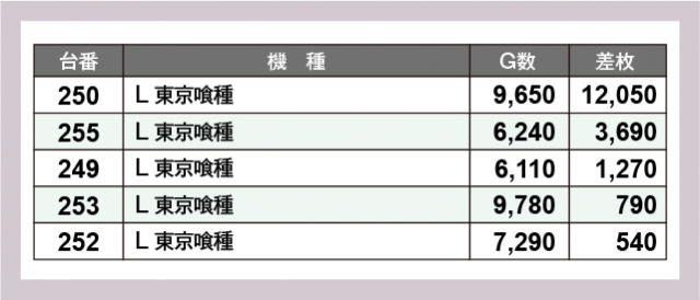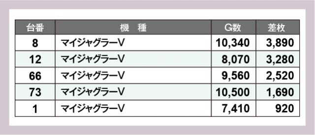 ※差枚数順に掲載しています