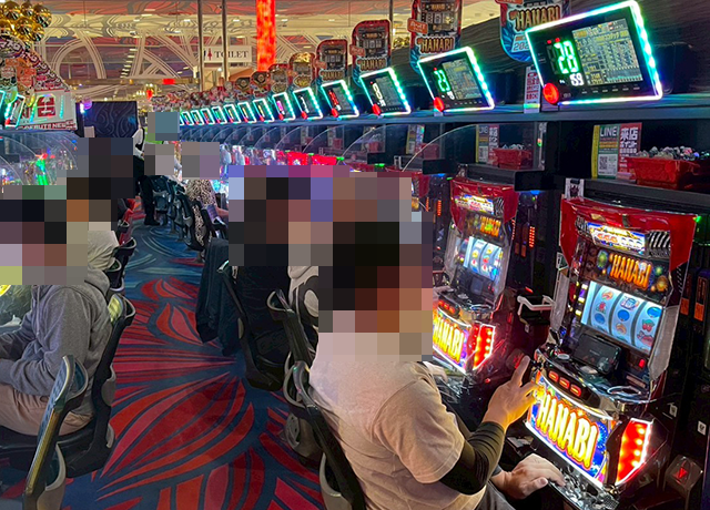「アイムジャグラーEX」や「マイジャグラーⅤ」、「新ハナビ」でもプレイヤーたちは笑顔。