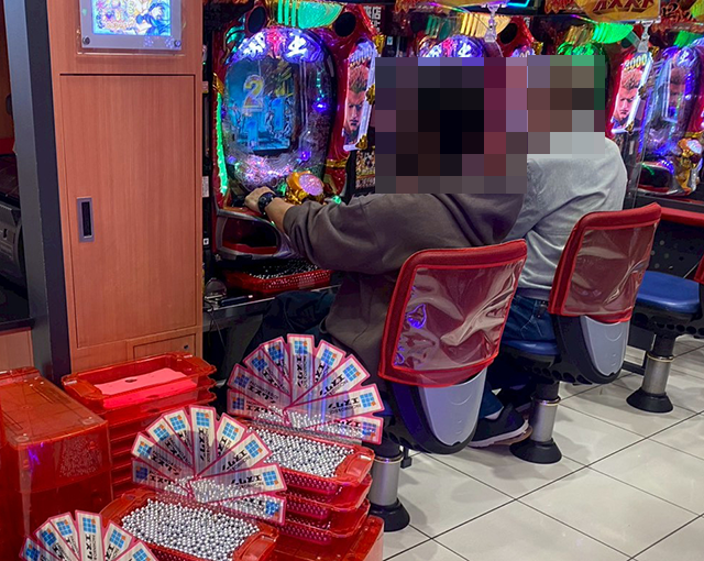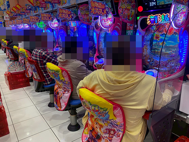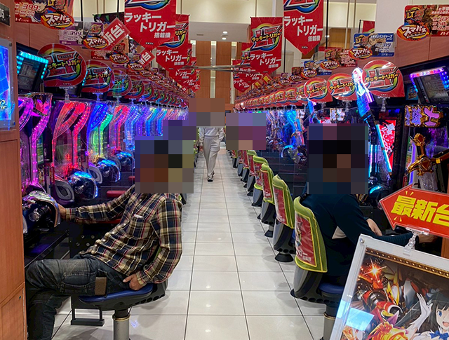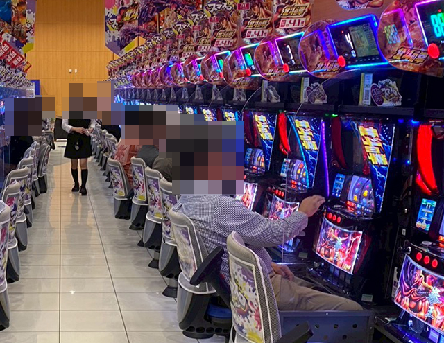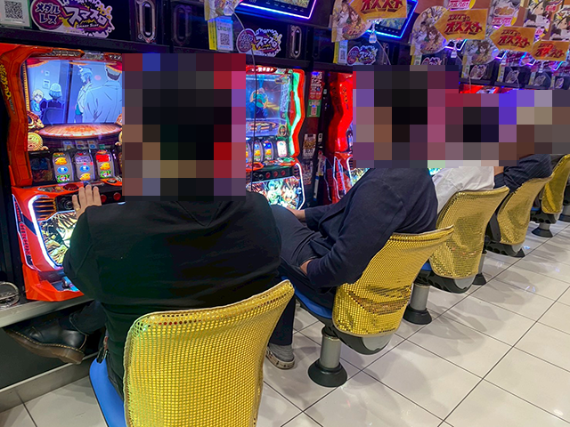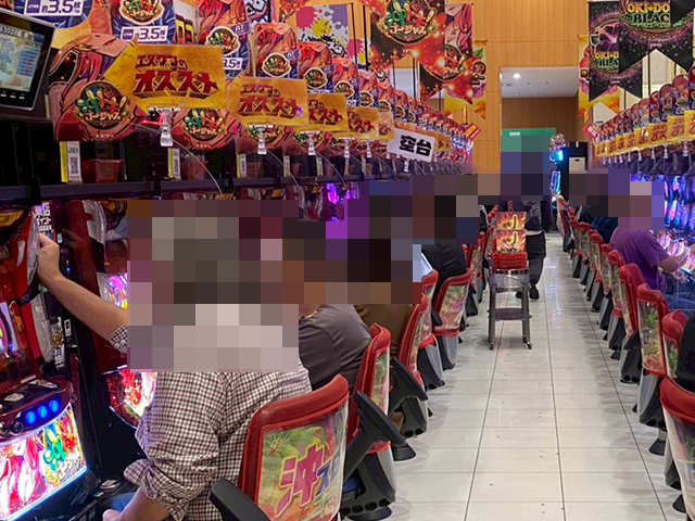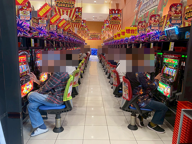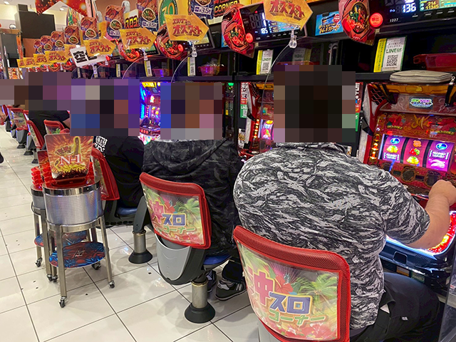 パチンコをみると、「Pスーパー海物語IN沖縄6」や「P大海物語5スペシャル」に笑みを浮かべている姿が多く、シマ内は盛況となっていた。