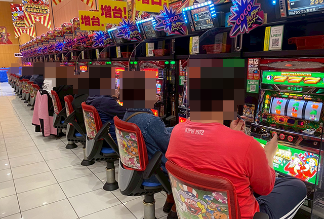 ジャグラーシリーズもにぎわいが大きく、増台された「ネオアイムジャグラーEX」がフル稼働!!