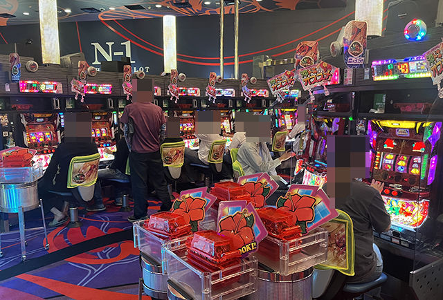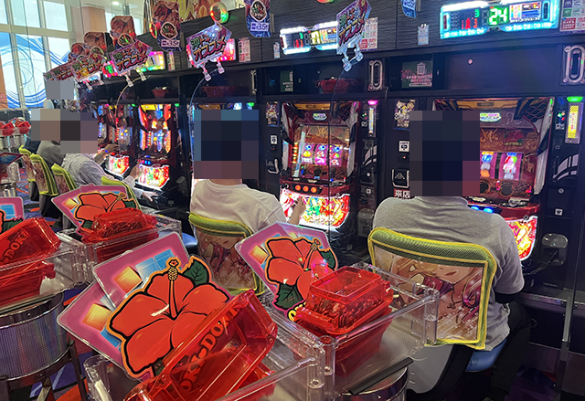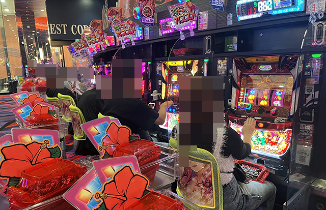 空き台が少なく、持ち玉で遊技をおこなっているプレイヤーも多い。