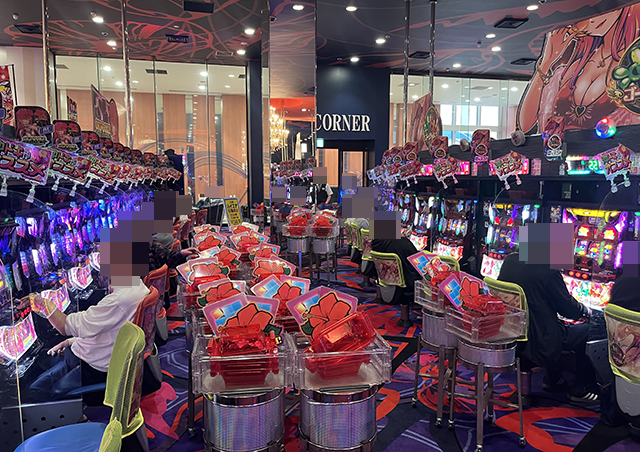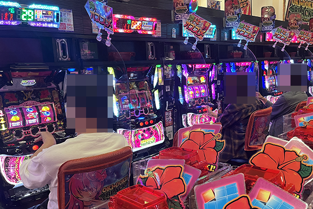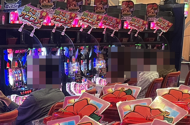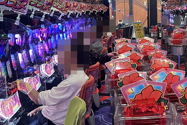 持ち玉で遊技をおこなっている姿が多く、4箱以上となっている台もみられた。