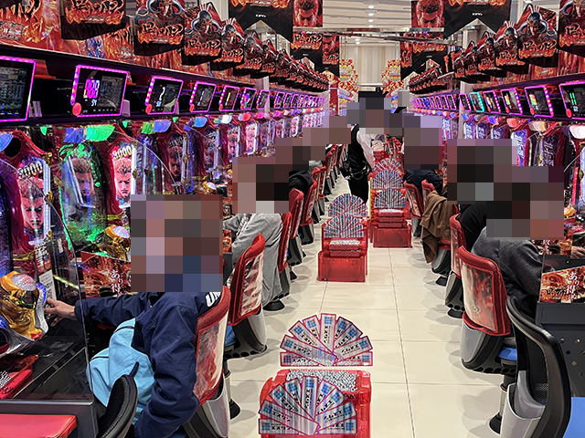 「Pスーパー海物語IN沖縄6」と「P北斗の拳 暴凶星」でも、プレイヤーたちは持ち玉を使い、笑顔で遊技をおこなっていた。