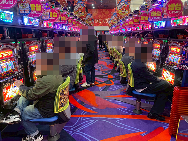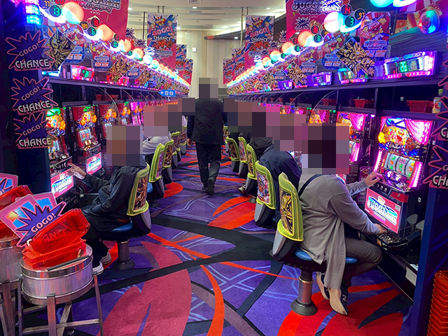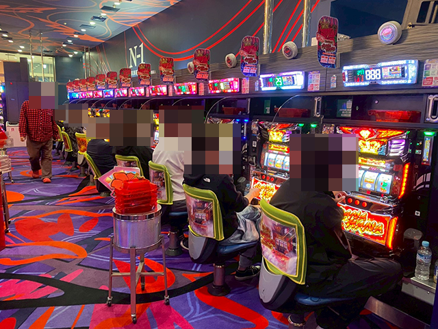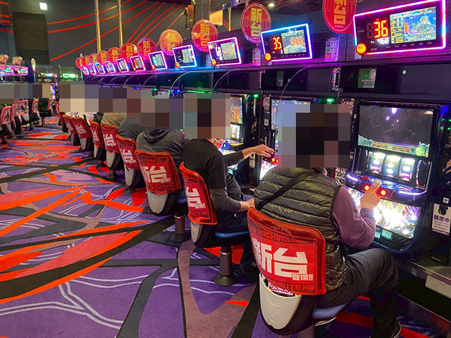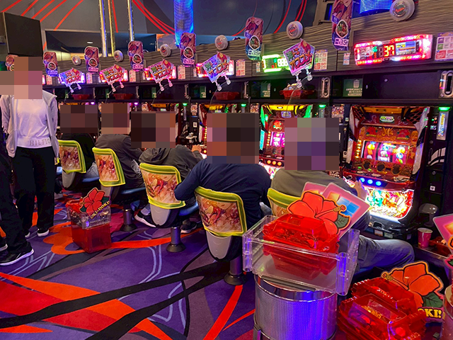 取材時のパチスロは、「スマスロ 新鬼武者3」の稼働率が高く、シマ内は活況!