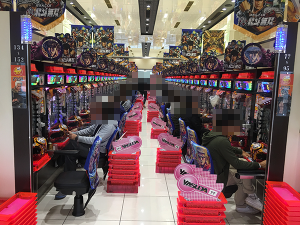 14時頃の4円パチンコにおいて、とくに活気づいていたのが「ぱちんこCR真・北斗無双」と「ぱちんこCR北斗の拳7 転生」。ポテンシャルを発揮できているといったプレイヤーが多く、各シマに魅力的な光景が広がっていた。