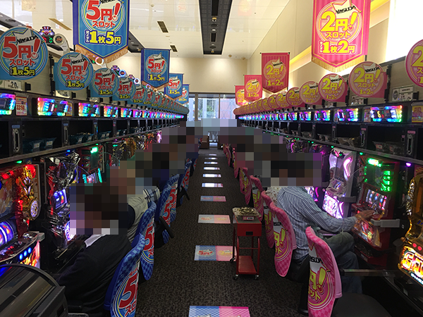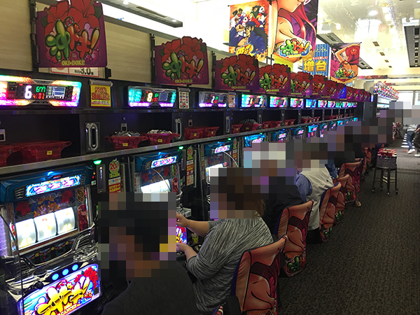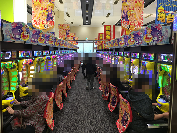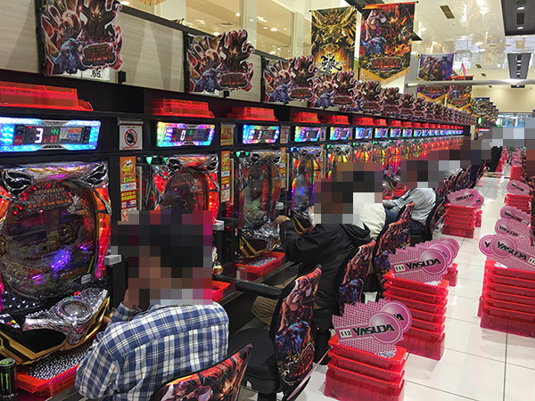 ホール内には、パチンコ・パチスロともに遊技を楽しむプレイヤーの姿があった。
