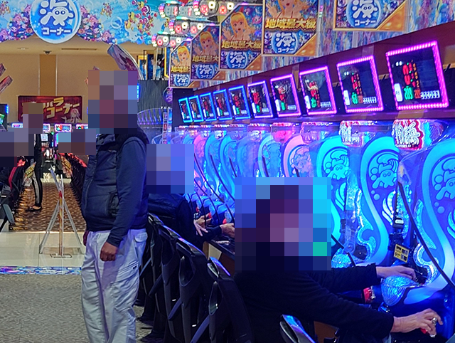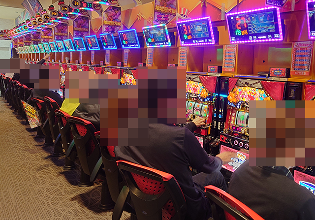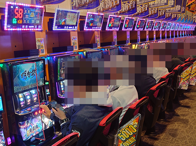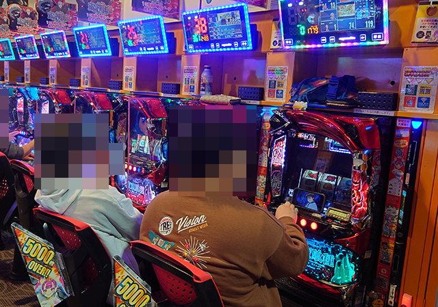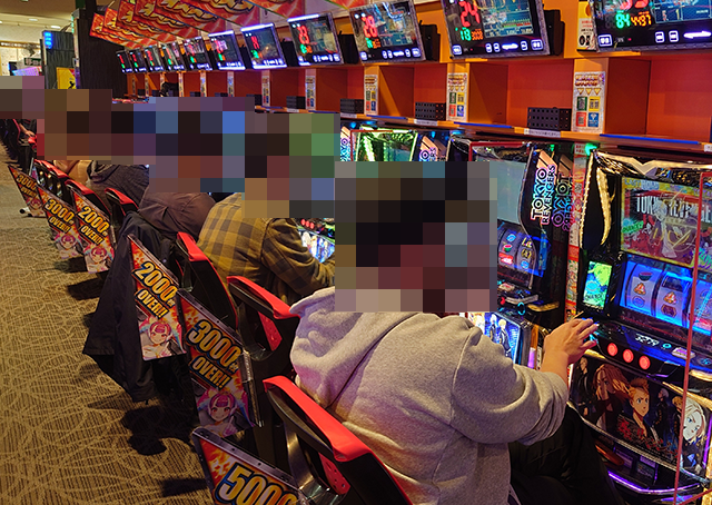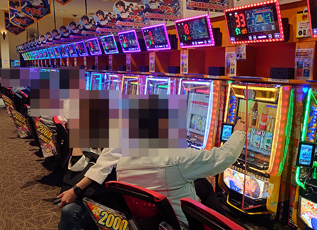 すべての台に各台計数機が設置されているため、のびのびと遊技をおこなえる空間となっていた。