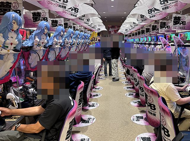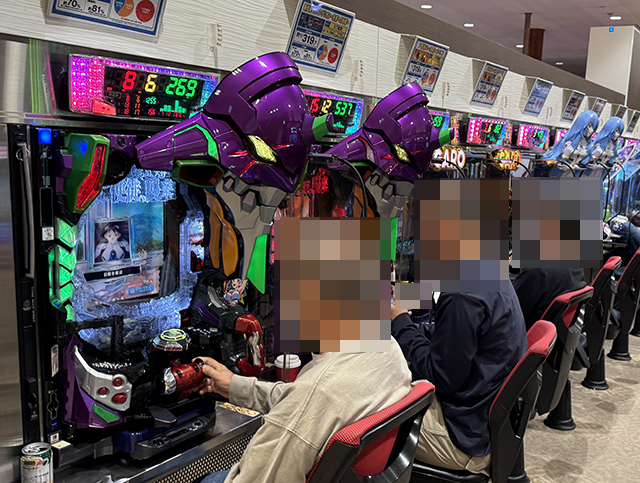 取材時は、「PAシン・エヴァンゲリオン 99 遊タイム付 ごらくver.」や「P神・天才バカボン~甘神SPEC~」、「Pフィーバー 機動戦士ガンダムユニコーン LIGHT ver.」などが盛況。