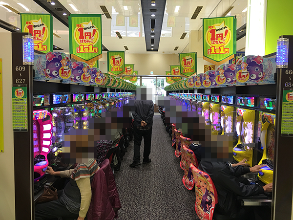 14時をまわった頃の4円パチンコをみてみると、「ぱちんこCR真・北斗無双」と「ぱちんこCR北斗の拳7 転生」が活況。笑みを浮かべるといったプレイヤーがおり、満足感も得られているようであった。