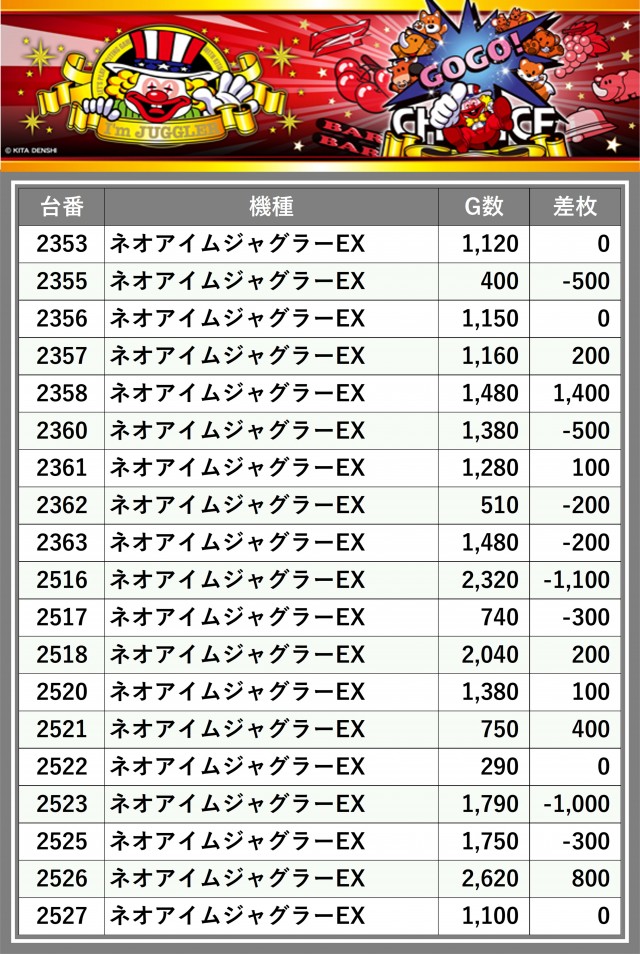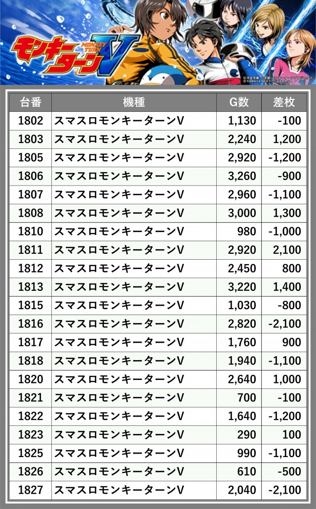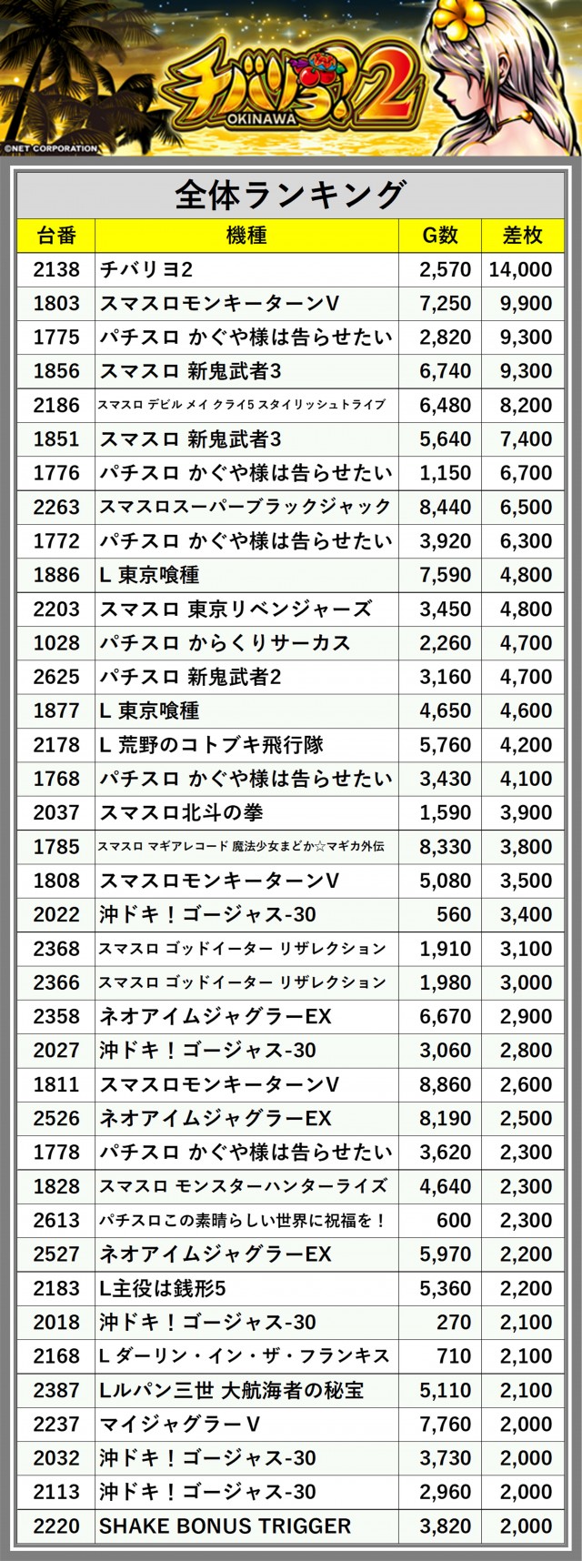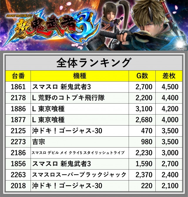 厳選された取材対象機種をはじめ、その他スロット全体から好記録が飛び出した!プレイヤーが楽しんだ1日を下記データにて振り返ってみて欲しい。