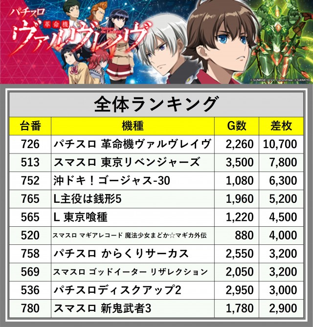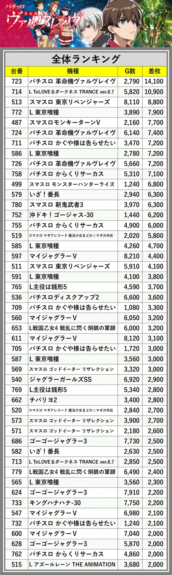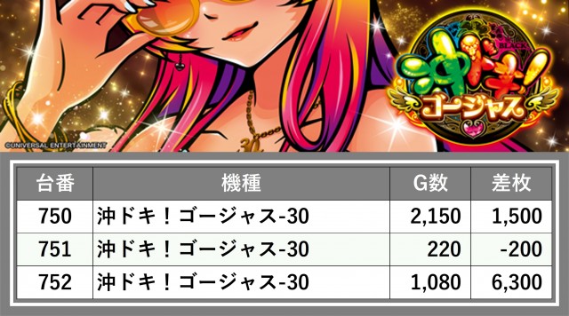 厳選された取材対象機種をはじめ、その他スロット全体から好記録が飛び出した!プレイヤーが楽しんだ1日を下記データにて振り返ってみて欲しい。