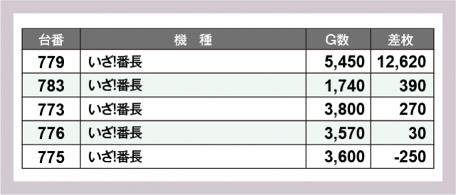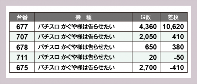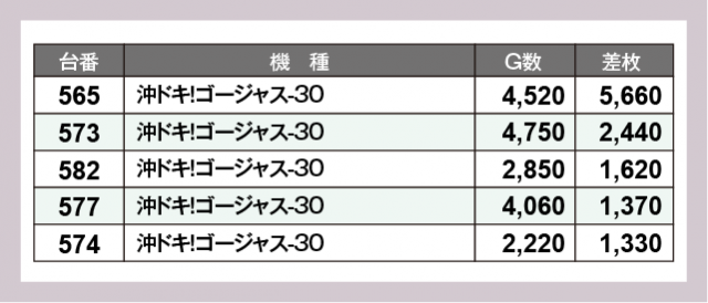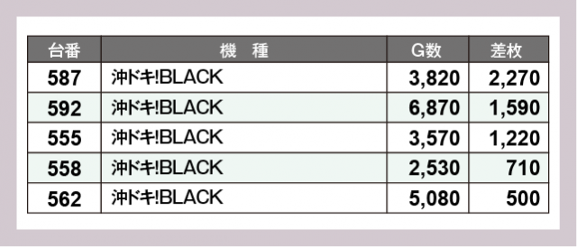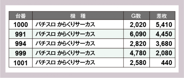 ※差枚数順に掲載しています