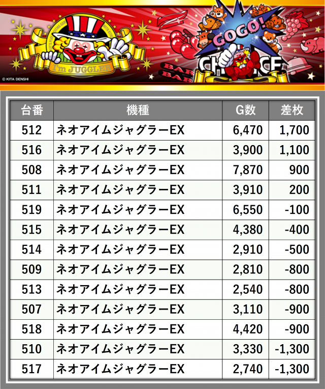 厳選された取材対象機種をはじめ、その他スロット全体から好記録が飛び出した!プレイヤーが楽しんだ1日を下記データにて振り返ってみて欲しい。