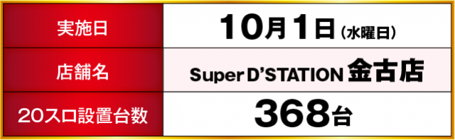 Super D’STATION金古店 差枚ランキング(10月1日)