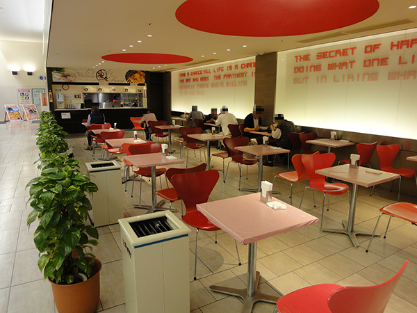 同店のレストスペースは広々としていて開放的。モダンなイスとテーブルが並べられ、お洒落なカフェにいるかのような落ち着いた雰囲気。