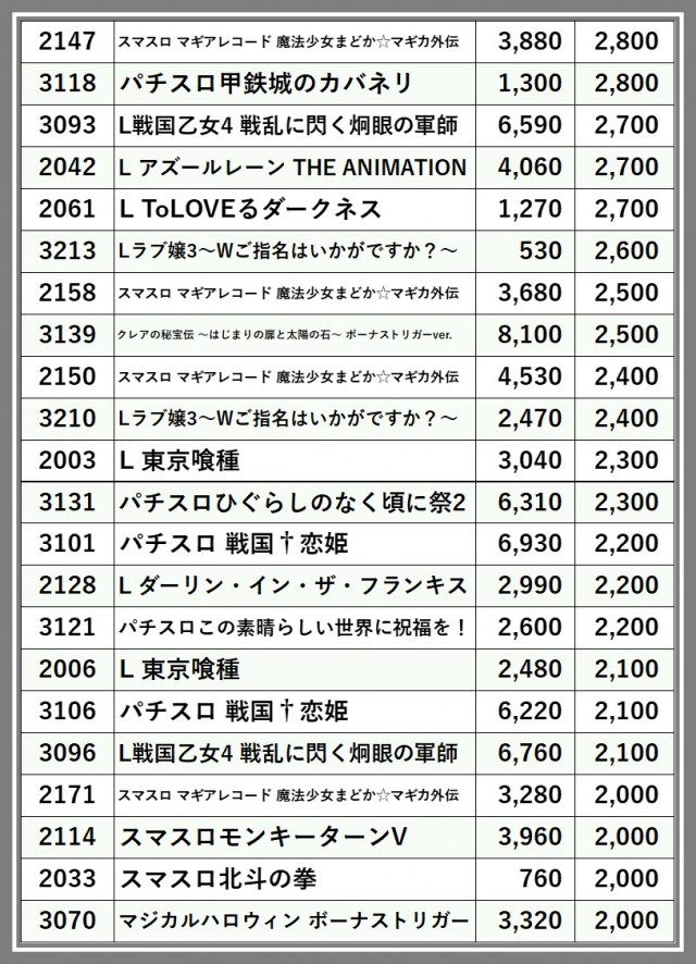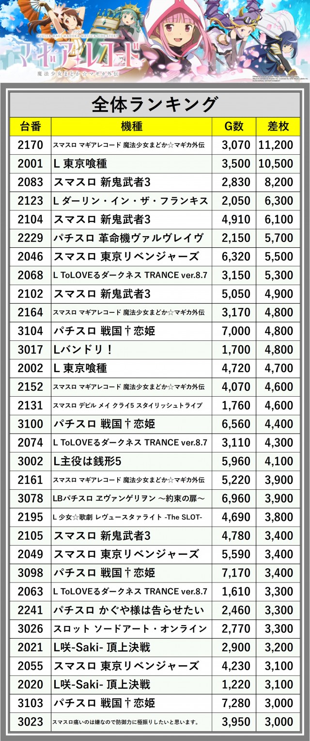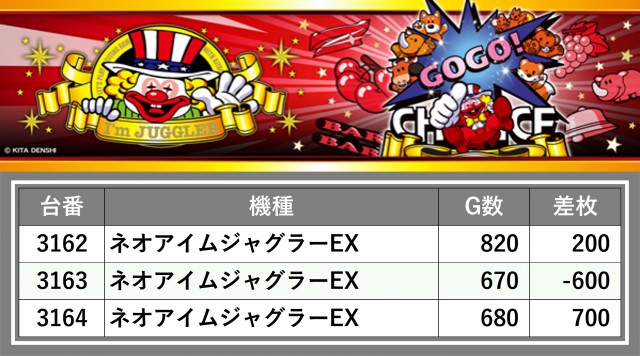 厳選された取材対象機種をはじめ、その他スロット全体から好記録が飛び出した!プレイヤーが楽しんだ1日を下記データにて振り返ってみて欲しい。